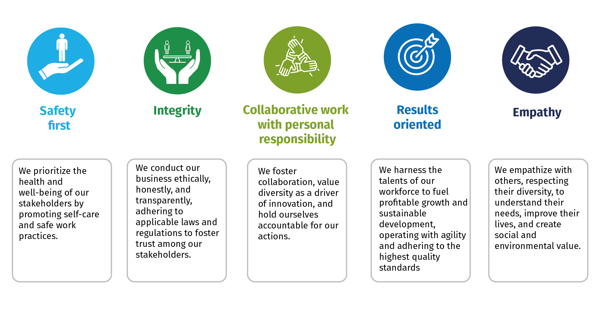 Our brand is represented by a variety of colors that demonstrate who we are: blue represents the natural energy of our business, and green signifies our environmental responsibility towards society.